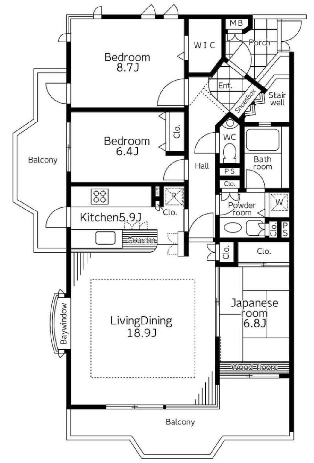 • Deposit: 2 months' rent, Key money 1 month's rent